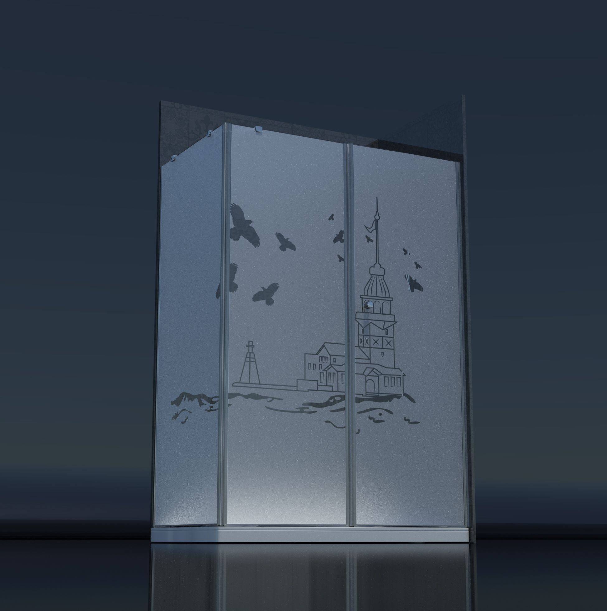 Geniş cam deseni yelpazemizde yine de sizin uygun olan desen yoksa üzülmeyin. Sizin belirlediğiniz bir tasarımı da kumlama ile uygulayabiliyoruz.